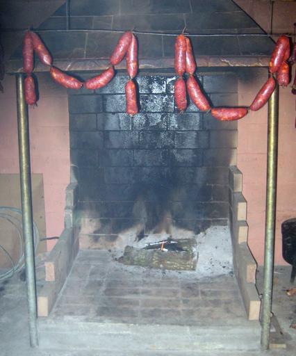 Keywords: Chourizos a secar.jpg Cebolas Galicia Spain Own 2007-12-26 Grela Public domain Chorizo from Spain Cuisine of Galicia Spain Smoked pork Smoked sausages Sausage making