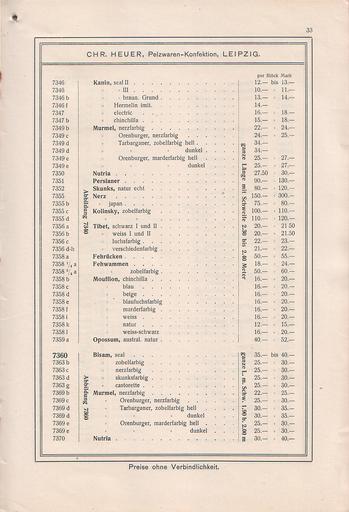 | Keywords: Chr. Heuer, Leipzig, Pelz-Konfektions-Katalog 1908-1909 -33.jpg  Chr Heuer Leipzig Ausgabe Saison 1908-1909 Konfektions-Katalog Leipzig Reichsgasse Nr 34 Pelzwaren Fabrikation Rauchwaren-Lager Filialen in Köln Schildergasse 55 a1; Breslau Blücherplatz 20 Ecke Ring Vertreten in Königsberg i Pr Heinrich Lange Magisterstrasse 28 Paris G Créveux 97 Rue d'Aboukir Neapel R Giustiniani 33 Via Guglielmo Sanfelice Haag G J Wijtenberg 78 Schenkweg Kopenhagen Fr Löwenstein 134 Osterbrogade Chr Heuer Leipzig Pelz-Konfektions-Katalog 1908-1909 - jpg 32 34 Chr Heuer Leipzig Ausgabe Saison 1908-1909 Konfektions-Katalog / Collection Kuhn 1908 Chr Heuer PD-old Chr Heuer Leipzig Pelz-Konfektions-Katalog 1908-1909 Rabbit fur advertising Marmot fur advertising Nutria fur advertising Karakul fur advertising Skunk fur advertising Mink fur advertising Kolinsky fur advertising Tibet lamb fur advertising Squirrel fur advertising Mouflon fur advertising Possum fur advertising Musquash fur advertising |