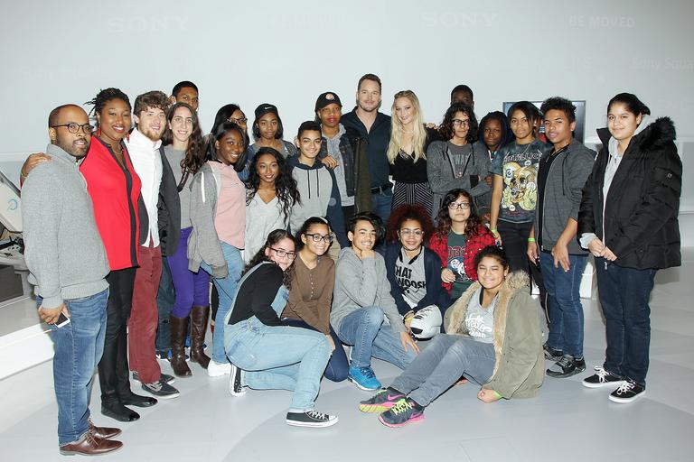 Keywords: new york newyork ny us New York, NY - 12/6/16: Chris Pratt and Jennifer Lawrence Surprise Ghetto Film School Students at the Sony Square Passengers Experience in NYC. New York, NY - 12/6/16: Chris Pratt and Jennifer Lawrence Surprise Ghetto Film School Students at the Sony Square Passengers Experience in NYC.