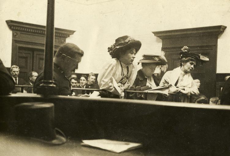| Keywords: the women's library thewomenslibrary women suffrage politics hires monochrome 7JCC/O/02/061 Photograph, printed, paper, monochrome, Christabel Pankhurst, Flora Drummond and Emmeline Pankhurst in the dock at Bow Street; manuscript inscriptions on reverse 'No. 17. Mrs/Miss Pankhurst in the dock. Herbert Gladstone and Lloyd George tackled by Christabel' 7JCC/O/02/061 Photograph, printed, paper, monochrome, Christabel Pankhurst, Flora Drummond and Emmeline Pankhurst in the dock at Bow Street; manuscript inscriptions on reverse 'No. 17. Mrs/Miss Pankhurst in the dock. Herbert Gladstone and Lloyd George tackled by Christabel' |