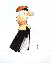 | Keywords: christian dior christiandior rené gruau renégruau illustration new look newlook bar suit barsuit 1947 (Credit: All rights belong to the illustrator) Conisdered the most iconic piece in Christian Dior's 1947 Spring-Summer eponymous début collection, the 'Bar Suit' was quickly dubbed the 'New Look' by Harper Bazaar's editor-in-chief, Carmel Snow, when she observed, “It's such a new look!”; the moniker has adhered ever since & the 'New Look' has become the cornerstone of the House of Dior. This new wasp-waisted, hip-padded silhouette of rounded shoulders & very full skirts, arriving as it did soon after the end of the Second World War, repudiated the form-hugging, slender bias-cut styles of the 1930s (pioneered & epitomized by Madame Vionnet) and continued wartime austerity measures & restrictions, which included textile consumption; in fact, it was considered scandalous & there was some real hostility shown towards this ultra-feminine look (the skirt of which, in the lean post-war rationing years which, as in the United Kingdom, remained in effect into the mid-1950s, required tens of yards of fabric to manufacture) which was deemed shockingly decadent & wasteful - a veritable affront to sensible (wartime & post-war) frugality. It may seem an inconceivable reaction today, but it was not uncommon for French women, for instance, to retaliate by literally attacking & tearing a 'New Look' ensemble or dress into shreds from a wearer's back, on sight; anti-New Look protests were also staged. As the creator of the 'New Look' silhouette, Christian Dior himself faced similar animosity & ridicule, both at home & abroad. (Coco Chanel was among the most vociferous in her condemnation. Nestled in comfortable retirement in Lausanne, Switzerland, at the time & seething, she railed acidically against the new silhouette & derided its creator and his corseted creations: “Dior? He doesn’t dress women, he upholsters them!” is one remark that typically & succinctly summed up her opinion; it was largely due to the success of the 'New Look' & the eventual meteoric rise of Dior, that compelled Chanel to abandon her 10-year retirement & to re-open her Maison & ateliers once again, launching her comeback collection in February 1954. The utter simplicity of Chanel's post-war, understated aesthetic can be deemed as a direct, antithetical response to that of Dior's & his ilk.) The revolutionary look was nearly the cause of riots. It can be said, however, that Dior's 'New Look' marked a paradigm shift in mid-20th century fashion. (Credit: All rights belong to the illustrator) Conisdered the most iconic piece in Christian Dior's 1947 Spring-Summer eponymous début collection, the 'Bar Suit' was quickly dubbed the 'New Look' by Harper Bazaar's editor-in-chief, Carmel Snow, when she observed, “It's such a new look!”; the moniker has adhered ever since & the 'New Look' has become the cornerstone of the House of Dior. This new wasp-waisted, hip-padded silhouette of rounded shoulders & very full skirts, arriving as it did soon after the end of the Second World War, repudiated the form-hugging, slender bias-cut styles of the 1930s (pioneered & epitomized by Madame Vionnet) and continued wartime austerity measures & restrictions, which included textile consumption; in fact, it was considered scandalous & there was some real hostility shown towards this ultra-feminine look (the skirt of which, in the lean post-war rationing years which, as in the United Kingdom, remained in effect into the mid-1950s, required tens of yards of fabric to manufacture) which was deemed shockingly decadent & wasteful - a veritable affront to sensible (wartime & post-war) frugality. It may seem an inconceivable reaction today, but it was not uncommon for French women, for instance, to retaliate by literally attacking & tearing a 'New Look' ensemble or dress into shreds from a wearer's back, on sight; anti-New Look protests were also staged. As the creator of the 'New Look' silhouette, Christian Dior himself faced similar animosity & ridicule, both at home & abroad. (Coco Chanel was among the most vociferous in her condemnation. Nestled in comfortable retirement in Lausanne, Switzerland, at the time & seething, she railed acidically against the new silhouette & derided its creator and his corseted creations: “Dior? He doesn’t dress women, he upholsters them!” is one remark that typically & succinctly summed up her opinion; it was largely due to the success of the 'New Look' & the eventual meteoric rise of Dior, that compelled Chanel to abandon her 10-year retirement & to re-open her Maison & ateliers once again, launching her comeback collection in February 1954. The utter simplicity of Chanel's post-war, understated aesthetic can be deemed as a direct, antithetical response to that of Dior's & his ilk.) The revolutionary look was nearly the cause of riots. It can be said, however, that Dior's 'New Look' marked a paradigm shift in mid-20th century fashion. |