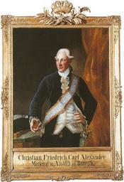 | Keywords: Christian Friedrich Karl Alexander von Ansbach und Bayreuth Friedrich Gotthart Naumann 002.JPG Christian Friedrich Carl Alexander Markgraf von Ansbach und Bayreuth c 1785 Oil on canvas Institution Scan aus aus dem Buch Hans-Otto Keunecke Hrsg Das Erlanger Schloss als Witwensitz 1712 “ 1817 Universitätsbibliothek Erlangen-NĂĽrnberg 2002 ISBN 3-930357-52-6 other versions PD-old-100 DEFAULTSORT 1785; Christian von Ansbach Friedrich Gotthart Naumann 18th-century portrait paintings location missing Karl Alexander von Brandenburg-Ansbach 1780s portrait paintings from Germany Male 18th-century oil portraits of standing men at three-quarter length Golden painting frames Habit Ă la française in portrait paintings Lace jabots in art Left hand on hip in portrait paintings Male portrait paintings with powdered wigs Painting frames Portrait paintings of men of Germany Portrait paintings of men with swords Portrait paintings of men with tables Red drapery in portrait paintings Sash of the Order of the Red Eagle in portrait paintings |