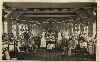 | Keywords: christmas first world war firstworldwar hospital nurses soldiers decorations christmas across the commons christmasacrossthecommons christmas 1916 christmas1916 monochrome photo border This photograph shows patients and staff of Ward 26, 3rd Northern General Hospital, Sheffield. The photograph was taken at some time in December 1916 and documents the Christmas Celebrations for the patients. Reference: DF.BGS-4-6-3 This photograph is taken from a set that offers a rare and intimate glimpse in to the Life of a Wounded Soldier recovering from the horrors of World War One. This particular set of photographs is taken from a collection held at Tyne & Wear Archives capturing the every day lives of the nurses and patients at the 3rd Northern General Hospital, Sheffield and Longshaw Lodge Convalescent Home for Wounded Soldiers, Grindleford, near Sheffield. The photographs were taken between August 1916 and June 1917. A blog about this fascinating collection can been viewed here on the Tyne & Wear Archives & Museums website. (Copyright) We're happy for you to share these digital images within the spirit of The Commons. Please cite 'Tyne & Wear Archives & Museums' when reusing. Certain restrictions on high quality reproductions and commercial use of the original physical version apply though; if you're unsure please email archives@twmuseums.org.uk This photograph shows patients and staff of Ward 26, 3rd Northern General Hospital, Sheffield. The photograph was taken at some time in December 1916 and documents the Christmas Celebrations for the patients. Reference: DF.BGS-4-6-3 This photograph is taken from a set that offers a rare and intimate glimpse in to the Life of a Wounded Soldier recovering from the horrors of World War One. This particular set of photographs is taken from a collection held at Tyne & Wear Archives capturing the every day lives of the nurses and patients at the 3rd Northern General Hospital, Sheffield and Longshaw Lodge Convalescent Home for Wounded Soldiers, Grindleford, near Sheffield. The photographs were taken between August 1916 and June 1917. A blog about this fascinating collection can been viewed here on the Tyne & Wear Archives & Museums website. (Copyright) We're happy for you to share these digital images within the spirit of The Commons. Please cite 'Tyne & Wear Archives & Museums' when reusing. Certain restrictions on high quality reproductions and commercial use of the original physical version apply though; if you're unsure please email archives@twmuseums.org.uk |
