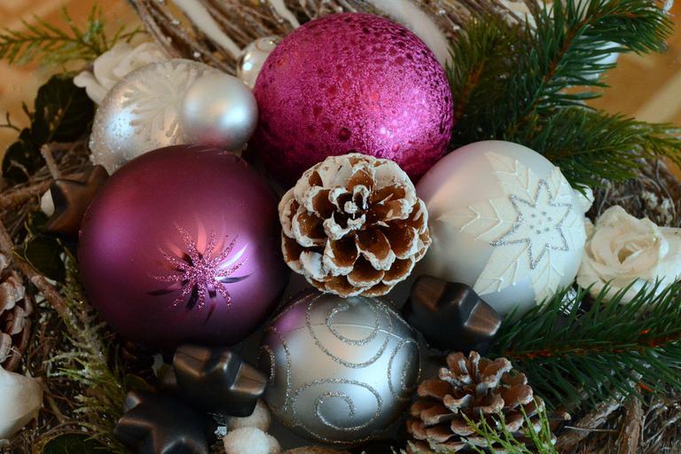 Keywords: christmas bauble decoration pink silver christmas decoration balls