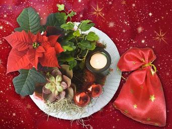 Keywords: christmas decoration plate nicholas gifts bag red candle balls background