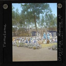 | Keywords: Christmas Meeting of an Old Woman's Class, Tumutumu, Kenya, ca.1905-ca.1940 (imp-cswc-GB-237-CSWC47-LS7-048).jpg en <br> Christmas Meeting of an Old Woman's Class Tumutumu Kenya ca 1905-ca 1940 Photograph of a Christmas meeting of an old woman's class at the mission station of Tumutumu A group of women are gathered outdoors sitting in a circle 4 women are standing inside the circle and there are bags possibly containing food sitting on the ground ; This belongs to a series of Church of Scotland Foreign Missions Committee lantern slides relating to the Kikuyu Mission in Kenya which was set up by Church of Scotland missionaries Hospitals were established by Scottish missionaries in Kikuyu in 1908 in Tumutumu in 1909 and in Chogoria in 1922 The missionaries also introduced the Presbyterian Church to the area The Kikuyu are Kenyaas most populous ethnic group Photographer Unknown Filename imp-cswc-GB-237-CSWC47-LS7-048 tif Coverage date 1905/1940 Part of collection International Mission Photography Archive ca 1860-ca 1960 Type images Part of subcollection Photographs from the Centre for the Study of World Christianity University of Edinburgh U K ca 1900-ca 1940s Repository name Centre for the Study of World Christianity Archival file impaunpub_Volume7/1654 url Repository address The University of Edinburgh School of Divinity New College Mound Place Edinburgh EH1 2LX United Kingdom Geographic subject country Kenya Format aacr2 1 lantern slide 8 x 8 cm Geographic subject continent Africa Rights Contact the repository for details Part of series Kenya Mission LS7 Repository email divinity-CSWC ed ac uk Subject lcsh Keyword Older women; Christmas Date created 1905/1940 Publisher of the digital version University of Southern California Libraries Subject aat genre group portraits Format aat lantern slides Legacy record ID impa-m68761 Access conditions http //www ed ac uk/schools-departments/divinity/research/centres/world-christianity/collections-resources File GB 237 CSWC47/LS7/48 1905/1940 author http //digitallibrary usc edu/cdm/ref/collection/p15799coll123/id/64774 PD-old-70-1923 Magic lantern images Images from USC Digital Library uploaded by Fæ International Mission Photography Archive ca 1860-ca 1960 |