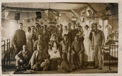 | Keywords: hospital nurses first world war firstworldwar christmas decorations soldiers flags moustache clean shaven cleanshaven uniforms nationality flags nationalityflags cosy warm hopeful black and white blackandwhite comradeship ward 26 ward26 sheffield healing 3rd northern general hospital 3rdnortherngeneralhospital sharing celebration monochrome black and white This photograph shows a view of patients and staff of Ward 26, 3rd Northern General Hospital, Sheffield. The photograph was taken at some time in December 1916 and documents the Christmas Celebrations for the patients. Reference: DF.BGS-4-6-2 This set offers a rare and intimate glimpse in to the Life of a Wounded Soldier recovering from the horrors of World War One. This particular set of photographs is taken from a collection held at Tyne & Wear Archives capturing the every day lives of the nurses and patients at the 3rd Northern General Hospital, Sheffield and Longshaw Lodge Convalescent Home for Wounded Soldiers, Grindleford, near Sheffield. The photographs were taken between August 1916 and June 1917. A blog about this fascinating collection can been viewed here on the Tyne & Wear Archives & Museums website. (Copyright) We're happy for you to share these digital images within the spirit of The Commons. Please cite 'Tyne & Wear Archives & Museums' when reusing. Certain restrictions on high quality reproductions and commercial use of the original physical version apply though; if you're unsure please email archives@twmuseums.org.uk This photograph shows a view of patients and staff of Ward 26, 3rd Northern General Hospital, Sheffield. The photograph was taken at some time in December 1916 and documents the Christmas Celebrations for the patients. Reference: DF.BGS-4-6-2 This set offers a rare and intimate glimpse in to the Life of a Wounded Soldier recovering from the horrors of World War One. This particular set of photographs is taken from a collection held at Tyne & Wear Archives capturing the every day lives of the nurses and patients at the 3rd Northern General Hospital, Sheffield and Longshaw Lodge Convalescent Home for Wounded Soldiers, Grindleford, near Sheffield. The photographs were taken between August 1916 and June 1917. A blog about this fascinating collection can been viewed here on the Tyne & Wear Archives & Museums website. (Copyright) We're happy for you to share these digital images within the spirit of The Commons. Please cite 'Tyne & Wear Archives & Museums' when reusing. Certain restrictions on high quality reproductions and commercial use of the original physical version apply though; if you're unsure please email archives@twmuseums.org.uk |