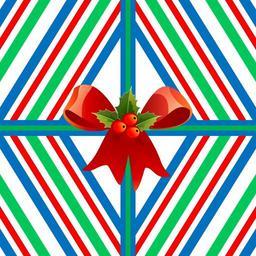 Keywords: christmas present gift red bow holly ribbon blue green stripes diamond shape bright festive decoration celebration white seasonal winter season surprise celebrate december paper wrapping shiny santa creative abstract