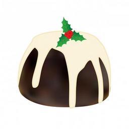 Keywords: christmas pudding christmas pudding desert fruit cake icing custard art xmas holly berry berries leaves food isolated white background