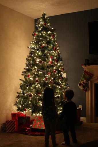 Keywords: christmas santa presents holiday red xmas claus winter happy waiting smiling home cheerful celebrate joy portrait children together enjoying surprise happiness joyful