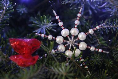 Keywords: christmas xmas holidays season beaded ornament tree white red light