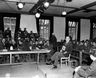 | Keywords: Christof Knoll.jpeg Defendant Christof Ludwig Knoll a former political prisoner and block leader testifies at the trial of former camp personnel and prisoners from Concentration Camp Dachau USHMM - http //inquery ushmm org/uia-cgi/uia_doc/photos/15230 hr null 1945-12-07 Gasiewicz Public Domain PD-USGov Dachau prisoners Dachau trial |