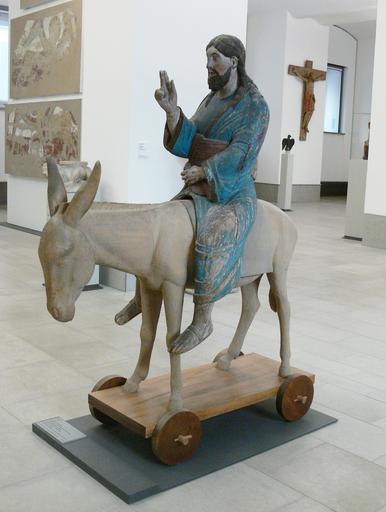 Keywords: Christus als Eselsreiter Niederbayern.jpg Artwork Christ anonymous LangSwitch Esel August Weißer modern Donkey August Weißer modern de Christus ale Eseltreiber mitgeführt bei Prozessionen am Palmsonntag en Christ on the Back of a Donkey used for processions on Palm Sunday Christ late other date century 12 ; de Esel moderne Ergänzung en donkey is a modern addition poplar de neuere Fassung en new colouring Bode-Museum Skulpturensammlung Object history ProvenanceEvent 1904 gift J Rosenbaum Accession number Inv 2766f Place of creation en Christ Lower Bavaria de Esel aus einer Kirche bei Landshut en donkey from a church in Landshut own Andreas Praefcke 2007 <gallery>Bassa baviera palmesel fine del XII sec JPG</gallery> Sculptures of Palmesel 1100 Bode Gothic sculpture in the Bode-Museum Palmesel Photos by User AndreasPraefcke |