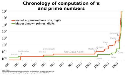 | Keywords: Chronology of pi and primes.png en Chronology of computation of Ï and prime numbers Red line - record approximations of Ï digits green line - biggest known primes digits Selected mathematicians who made the record calculations are shown Sources of data https //en wikipedia org/w/index php title Chronology_of_computation_of_ CF 80 oldid 745071166 1 https //en wikipedia org/w/index php title Largest_known_prime_number oldid 745137161 2 2016-10-20 own Sandegud other versions Data center style background f0f0f0; center style background f0f0f0; Pi digits center style background f0f0f0; Prime digits - -2000 1 - -1650 2 - -300 3 - -250 3 - 263 5 - 480 7 - 1400 10 - 1424 17 - 1456 4 - 1460 6 - 1588 6 - 1596 20 - 1615 32 - 1621 35 - 1630 38 - 1699 71 - 1706 100 - 1719 112 - 1732 7 - 1772 10 - 1789 126 - 1794 136 - 1844 200 - 1847 248 - 1853 261 - 1855 500 14 - 1874 527 - 1876 39 - 1946 620 - 1947 710 - 1947 808 - 1949 1120 - 1949 2037 - 1951 79 - 1952 687 - 1954 3093 - 1957 7480 969 - 1958 10021 - 1959 16167 - 1961 100265 1332 - 1963 3376 - 1966 250000 - 1967 500000 - 1971 6002 - 1973 1001250 - 1978 6533 - 1979 13395 - 1981 2000050 - 1982 8388576 25962 - 1983 16777206 39751 - 1985 17526200 65050 - 1986 29360111 - 1986 33554414 - 1986 67108839 - 1987 134214700 - 1988 201326551 - 1989 1073740799 65087 - 1991 2260000000 - 1992 227832 - 1994 4044000000 258716 - 1995 6442450000 - 1996 420921 - 1997 51539600000 895932 - 1998 909526 - 1999 68719470000 - 1999 206158430000 2098960 - 2001 4053946 - 2002 1241100000000 - 2003 6320430 - 2004 7235733 - 2005 7816230 - 2005 9152052 - 2006 9808358 - 2008 12978189 - 2009 2699999990000 - 2010 5000000000000 - 2011 10000000000050 - 2013 12100000000050 17425170 - 2014 13300000000000 - 2016 22338618 - cc-zero Pi Prime numbers History of mathematics |