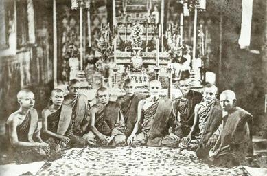 | Keywords: Chulalongkorn and his teachers in ordination.jpg en King Chulalongkorn and his teachers in ordination in 1873 th จากซ้ายไปขวา 1 พระบาทสม ด็จพระจุลจอม กล้า จ้าอยู่หัว 2 th พระวรวงศ์ ธอ พระองค์ จ้าพระอรุณนิภาคุณากร 3 th พระ ทพกระวี นิ่ม สุจิณฺโณ 4 th สม ด็จพระมหาสมณ จ้า กรมพระยาปว รศวริยาลงกรณ์ 5 th พระจันทรโคจรคุณ ยิ้ม จนฺทรํสี 6 th สม ด็จพระวันรัตน์ ทับ พุทฺธสิริ 7 th พระพรหมมุนี หมือน สุมิตฺโต 8 th สม ด็จพระพุฒาจารย์ ศรี อโนมสิริ 9 th สม ด็จพระอริยวงศาคตญาณ สม ด็จพระสังฆราช สา ปุสฺส ทโว http //www jaowka com/รูปถ่าย มื่อครั้งรัชกา/ author 1873 PD-Thailand Photos of Rama V Buddhist ordinations in Thailand PD-old-100 |