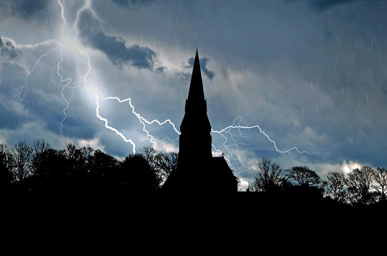 Keywords: church architecture skyline trees tree storm lightning rain weather sky landscape background wind cloud cloudy shadow