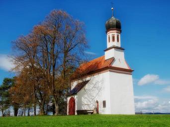 Keywords: church architecture steeple trees faith religion christianity sky clouds nature outside country rural countryside