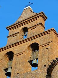 Keywords: church bells bell tower heritage village sky blue stones roses cross region toulouse