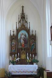 | Keywords: Church Brezova altar.JPG en Saints Cyril and Methodius church in Březová Uherské Hradiště District Czech Republic cs Kostel sv Cyrila a Metoděje v Březové okres Uherské Hradiště boční oltář Anděla strážného own Kenad 2010-08-02 Interior of the Church of Saints Cyril and Methodius Březová Neo-gothic altars in the Czech Republic |