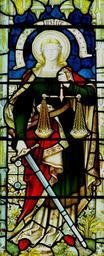 Keywords: church church window judgment glass window window stained glass christianity faith justice angel horizontal sword judge court