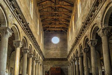 Keywords: church columnar italy viterbo stone wood blanket dom roman cathedral architecture faith religion catholic house of worship christianity vault construction gothic