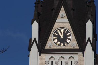 Keywords: church czech cieszyn masaryk sets sacred heart clock tower architecture steeple church clock heaven trip decorative photo monument ornament color yellow