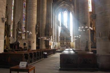 Keywords: church inside light columns stained glass window pray temple the rays lighting ray of light monument