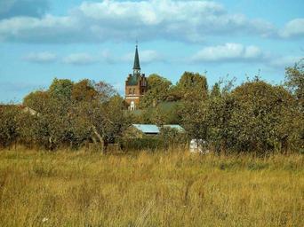Keywords: church old historically steeple box church village brandenburg germany