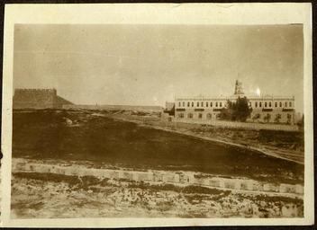 | Keywords: world war i worldwari auckland mounted rifles aucklandmountedrifles palestine jerusalem photo border text outdoor Bell tower of the Abbey of the Dormition on Mount Zion is behind. Near Zion Gate. Greek Orthodox Boys School? in the foreground. Bell tower of the Abbey of the Dormition on Mount Zion is behind. Near Zion Gate. Greek Orthodox Boys School? in the foreground. | ||||
