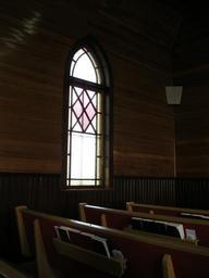 Keywords: church pews window interior religion faith worship christianity catholic seating spirituality