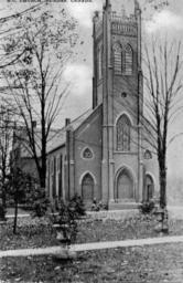 | Keywords: blackandwhite monochrome outdoor black and white Postcard of view of front of church with five children sitting on bench or wall out front. Two large urns with foliage in foreground. 507x308 Black&White Publisher: Rumsey & Co., Toronto, Cananda Postcard of view of front of church with five children sitting on bench or wall out front. Two large urns with foliage in foreground. 507x308 Black&White Publisher: Rumsey & Co., Toronto, Cananda | ||||