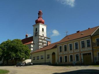 Keywords: Church st Vavrinec.JPG Church of st Lawrence Sedlec-Prčice Czech Republic own 2006-06-10 Lovecz 19 09 1 July 2006 UTC PD Church of Saint Lawrence Prčice Vítkovo náměstí Scaffolding in the Czech Republic