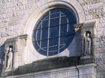 Keywords: church statues building architecture glass window romanshorn switzerland facade church window