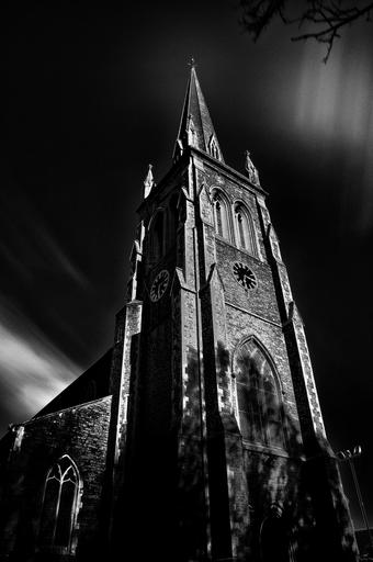 Keywords: church steeple architecture religion old building religious worship town christianity landmark landscape holy outdoor wales pray god spiritual heaven black and white divine spirituality christ jesus peace clock bells long exposure