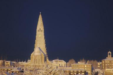 Keywords: church white winter snow blue cold iceland