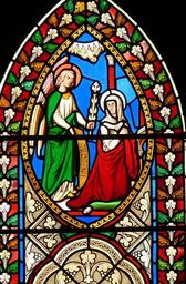 Keywords: church window church window stained glass faith image bible christianity historically stained glass window christ jersey united kingdom england angel proclamation maria