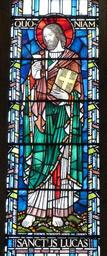 Keywords: church window church window apostle lukas stained glass faith image bible christianity historically stained glass window christ jersey united kingdom england st helier