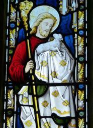 Keywords: church window stained glass england united kingdom church image historically window art christ shepherd sheep protect