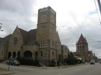 | Keywords: Churches on Fayette Street in Uniontown.jpg 39 53 56 N 79 43 39 W Churches on the southern side of Fayette Street w U S Route 40 just west of the Union Street intersection in Uniontown Pennsylvania Uniontown Pennsylvania United States The closer church is Greater Bethel Baptist Church while in the distance is Trinity United Presbyterian Church Own 2011-09-30 User Nyttend Nyttend None Brick buildings in Pennsylvania Baptist churches in Pennsylvania Gothic revival churches in Pennsylvania Presbyterian churches in Pennsylvania Romanesque revival churches in Pennsylvania Stone churches in Pennsylvania U S Route 40 in Pennsylvania Uniontown Pennsylvania Building-centered pictures by User Nyttend Taken with Canon PowerShot A540 |