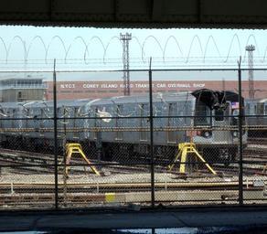 MAKE A MEME View Large Image Car Overhaul Shop S jeh.jpg en Looking northeast under Belt Parkway at F train storage and en Coney Island Complex overhaul shop on a sunny midday No the front car doesn't have damage on top Some black plastic sheeting is caught on the ...