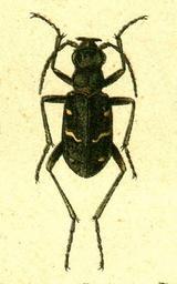 Keywords: Cicindela silvatica jacobs.jpg Cicindela silvatica Cuted from G G Yakobson Beetles of Russia Table 2 1905-1915 G G Yakobson PD-scan Georgiy Jacobson Beetles Russia and Western Europe extracted images Cicindela sylvatica