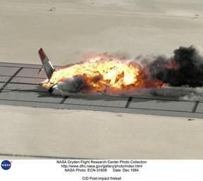 | Keywords: CID Post-impact fireball DVIDS713785.jpg en The B-720 after impact and sliding through the wing openers is becoming enveloped in a fireball The right wing appears to be folding over as the aircraft continues to slide In a typical aircraft crash fuel spilled from ruptured fuel tanks forms a fine mist that can be ignited by a number of sources at the crash site In 1984 the NASA Dryden Flight Research Facility after 1994 a full-fledged Center again and the Federal Aviation Administration FAA teamed-up in a unique flight experiment called the Controlled Impact Demonstration CID to test crash a Boeing 720 aircraft using standard fuel with an additive designed to supress fire The additive FM-9 a high-molecular-weight long-chain polymer when blended with Jet-A fuel had demonstrated the capability to inhibit ignition and flame propagation of the released fuel in simulated crash tests This anti-misting kerosene AMK cannot be introduced directly into a gas turbine engine due to several possible problems such as clogging of filters The AMK must be restored to almost Jet-A before being introduced into the engine for burning This restoration is called degradation and was accomplished on the B-720 using a device called a degrader Each of the four Pratt Whitney JT3C-7 engines had a degrader built and installed by General Electric GE to break down and return the AMK to near Jet-A quality In addition to the AMK research the NASA Langley Research Center was involved in a structural loads measurement experiment which included having instrumented dummies filling the seats in the passenger compartment Before the final flight on December 1 1984 more than four years of effort passed trying to set-up final impact conditions considered survivable by the FAA During those years while 14 flights with crews were flown the following major efforts were underway NASA Dryden developed the remote piloting techniques necessary for the B-720 to fly as a drone aircraft; General Electric installed and tested four degraders one on each engine ; and the FAA refined AMK blending testing and fueling a full-size aircraft The 15 flights had 15 takeoffs 14 landings and a larger number of approaches to about 150 feet above the prepared crash site under remote control These flight were used to introduce AMK one step at a time into some of the fuel tanks and engines while monitoring the performance of the engines On the final flight No 15 with no crew all fuel tanks were filled with a total of 76 000 pounds of AMK and the remotely-piloted aircraft landed on Rogers Dry Lakebed in an area prepared with posts to test the effectiveness of the AMK in a controlled impact The CID which some wags called the Crash in the Desert was spectacular with a large fireball enveloping and burning the B-720 aircraft From the standpoint of AMK the test was a major set-back but for NASA Langley the data collected on crashworthiness was deemed successful and just as important NASA Identifier NIX-ECN-31808 2009-09-23 Glenn Research Center https //www dvidshub net/image/713785 713785 2012-10-10 17 31 WASHINGTON DC US PD-USGov Images from DoD uploaded by Fæ Controlled Impact Demonstration |
