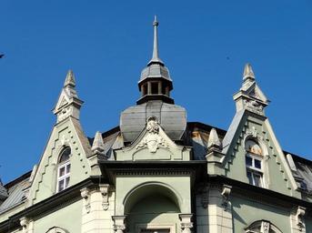 Keywords: cieszkowskiego street bydgoszcz pediment gable architecture building facade turret