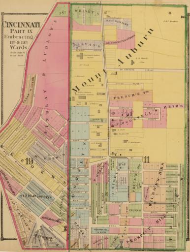 | Keywords: Cincinnati part IX embracing 11th & 19th wards. (1869).png en wikipedia 2010 February 5 Author Harrison Robert H ; Titus Clarence O Date 1869 Short Title Cincinnati 9 wards 11 19 Publisher Philadelphia C O Titus Type Atlas Map Obj Height cm 46 Obj Width cm 35 Scale 1 3 600 Note Two hand col lithographed maps on 1 sheet Shows numbers tracts owners of large parcels major buildings etc State/Province Ohio City Cincinnati Ohio ; Mount Auburn Cincinnati Ohio Full Title Cincinnati part IX embracing 11th 19th wards 1869 List No 3748 036 Page No 105 Series No 40 Engraver or Printer Worley Bracher ; Bourquin F Frederick b 1808 Publication Author Harrison Robert H ; Titus Clarence O Pub Date 1869 Pub Title Titus' atlas of Hamilton Co Ohio from actual surveys by R H Harrison C E Assisted by Geo E Warner A Leavenworth J E Sherman L C Warner R T Higgins to which is added a township map of the state of Ohio Also an outline railroad map of the United States Published by C O Titus 320 Chestnut St Philadelphia 1869 Assistants T F Pratt Cyrus Haven H Turner G P Stevenson J H Hall D B Titus G M Stevenson Engd by Worley Bracher 320 Chestnut St Phila Printed by F Bourquin 320 Chestnut St Phila Entered 1869 by C O Titus Pennsylvania Pub Reference LeGear Atlases of the United States 2803; Phillips 2381; Phillips Maps of America p 315; Checklist of printed maps of the Middle West to 1900 2-1047 Pub Note See note field above Pub List No 3748 000 Pub Type County Atlas Pub Maps 39 Pub Height cm 48 Pub Width cm 40 Image No 3748036 Institution Rumsey Collection Ownership Statement Copyright 2007 This historical cartographic image is part of the David Rumsey Historical Map Collection a large collection of online antique rare old and historical maps atlases globes charts and other cartographic items External links http //www davidrumsey com/directory/where/Mount+Auburn++Cincinnati++Ohio+/ Historic Maps of Mount Auburn Cincinnati Ohio Transferred from http //en wikipedia org en wikipedia; transferred to Commons by User IngerAlHaosului using http //tools wikimedia de/~magnus/commonshelper php CommonsHelper 2007-06-21 Original uploader was Paultyng at http //en wikipedia org en wikipedia PD-old Original upload log page en wikipedia Cincinnati_part_IX_embracing_11th_ 26_19th_wards _ 281869 29 png 2007-06-21 21 44 Paultyng 1027×1363× 3201403 bytes <nowiki></nowiki> 2007-06-21 21 39 Paultyng 1128×1406× 3311721 bytes <nowiki></nowiki> 2007-06-21 19 47 Paultyng 1128×1406× 3311721 bytes <nowiki>Author Harrison Robert H ; Titus Clarence O Date 1869 Short Title Cincinnati 9 wards 11 19 Publisher Philadelphia C O Titus Type Atlas Map Obj Height cm 46 Obj Width cm 35 Scale 1 3 600 Note Two hand col lithographed maps on 1 sheet S</nowiki> Maps of Cincinnati Ohio Neighborhoods in Cincinnati Ohio Cincinnati Ohio in the 1860s Old maps of cities in Ohio 1869 maps |