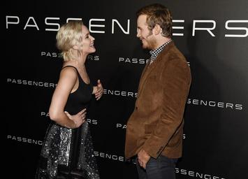 MAKE A MEME View Large Image Jennifer Lawrence and Chris Pratt at CinemaCon 2016 promoting Passengers. Jennifer Lawrence and Chris Pratt at CinemaCon 2016 promoting Passengers.