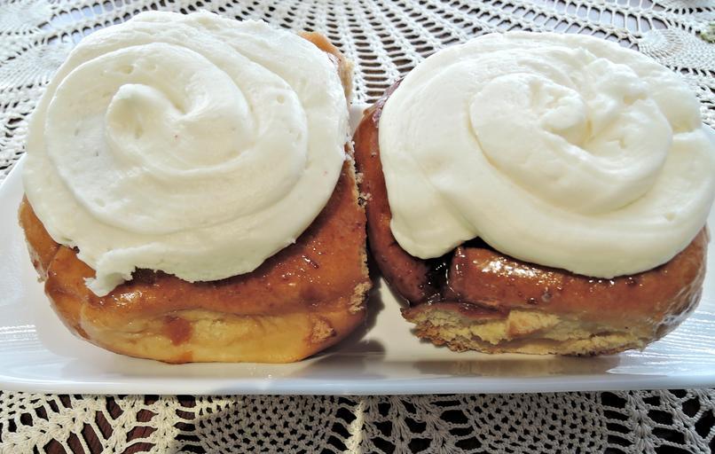 Keywords: cinnamon bun cream cheese topping yeast bread sweet food