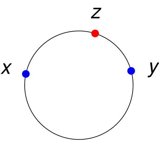 | Keywords: Circle as convex metric space.png Circle as convex metric space Made with Matlab own Circle-convex-metric-space svg Created with MATLAB Source code MATLAB <source lang matlab > an illustration of a circle as a convex metric space function main N 100; Theta linspace 0 2 1 pi N ; X cos Theta ; Y sin Theta ; figure 1 ; clf; hold on; axis equal; axis off; lw 1 5; black 0 0 0; plot X Y 'color' black 'linewidth' lw plot some balls to emphasize where the points are ball_rad 0 07; blue 0 0 1; red 1 0 0; t 0 45; P floor N t ; ball X P Y P ball_rad blue t 0 2; Q floor N t ; ball X Q Y Q ball_rad red t 0 05; R floor N t ; ball X R Y R ball_rad blue plot text fs 50; d 0 008; ii sqrt -1 ; place_text_smartly X P +i Y P fs 2 7 d '\it x ' 6 place_text_smartly X R +i Y R fs 6 2 d '\it y ' 6 place_text_smartly X Q +i Y Q fs 1 5 d '\it z ' 6 a phony box to avoid matlab bugs in saving to eps h0 0 3; white 0 99 1 1 1; plot 0 1+h0 'color' white ; plot 0 - 1+h0 'color' white ; saveas gcf 'Circle_as_convex_metric_space eps' 'psc2' ; function ball x y r color Theta 0 0 1 2 pi; X r cos Theta +x; Y r sin Theta +y; H fill X Y color ; set H 'EdgeColor' 'none' ; function place_text_smartly z font_size pos d tx N p cos 2 pi/N +sqrt -1 sin 2 pi/N ; z z + p pos d font_size; shiftx 0 00003; shifty 0 003; x real z ; y imag z ; H text x+shiftx font_size y+shifty font_size tx ; set H 'fontsize' font_size 'HorizontalAlignment' 'c' 'VerticalAlignment' 'c' </source> Images with Matlab source code Metric geometry Files by User Oleg Alexandrov from en wikipedia |