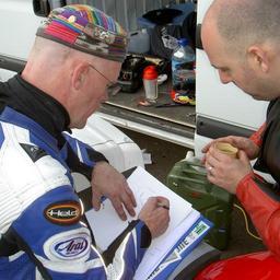 | Keywords: Circuit-draw.jpg en Mike Edwards race coach left is discussing riding techniques and track layout with one of his motorcycle racing students own Momnot 2009-06-01 Photo taken at Cadwell Park Lincolnshire People associated with motorcycle racing Motorcycle coaching |