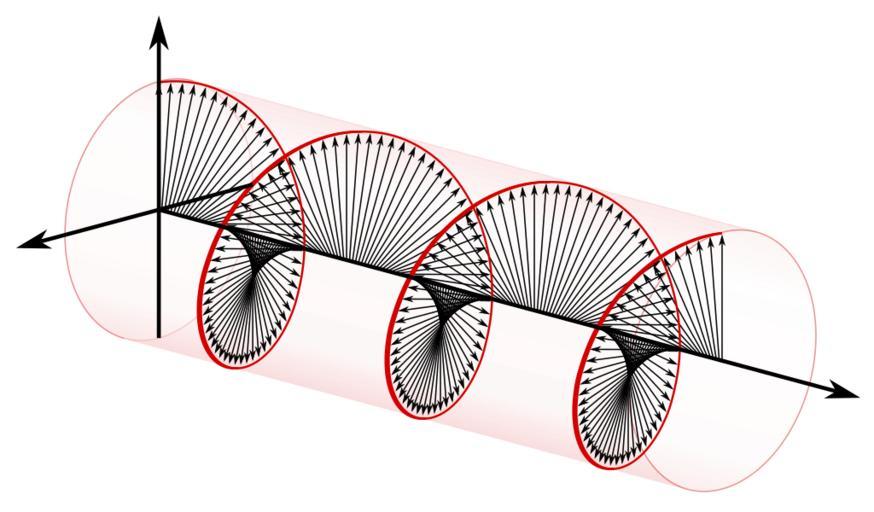 | Keywords: Circular.Polarization.Circularly.Polarized.Light Without.Components Left.Handed.svg Circular polarization Handedness conventions for clarification Observe that the helix forms a left-handed screw The helix is traced out by the electric field vector of wave and indicates that along the direction of travel the electric field has a constant magnitude while its direction steadily changes in a rotary type manner Note that given this is an electromagnetic wave for each electric field vector there is corresponding but not illustrated magnetic field vector that is at a right angle to the electric field vector and proportional in magnitude to it As a result it would trace out a second helix if displayed circular polarization ---- This image was created using the open source program Inkscape If you open it using that program the image will still be divided into layers and you will have access to information used to create it If you need to alter it I would suggest first going to my Wikimedia User page at Dave3457 where information is gathered and other related images are listed Created with Inkscape Polarization own Dave3457 polarisation Circular and elliptical polarization |