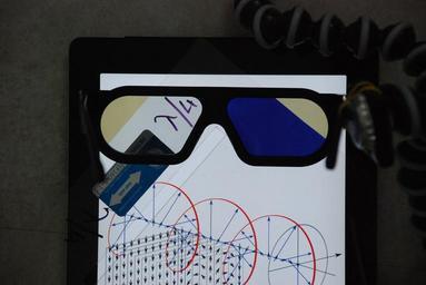 | Keywords: Circular polarization demonstrated with stereo glasses and iPad.JPG en Cinema glasses for a 3D movie master Image detect the helicity of circularly polarized light which is produced here by quarter-wave retarder sheet International Polarizer IP160WR-I with its fast axis at an angle of 45 degrees on top of the LCD screen of an iPad 2; the background image is File Circular Polarization Circularly Polarized Light plane wave Right Handed svg PD by User Dave3457 2012-02-19 own Pieter Kuiper cc-zero Uploaded with UploadWizard Circularly polarized glasses |